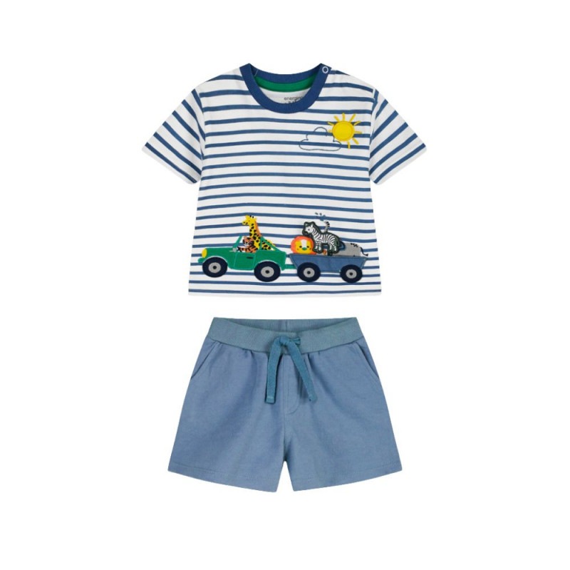 Βρεφικό καλοκαιρινό σετ για αγόρι από την εταιρεία ENERGIERS, ιδανικό για άνετες και δροσερές εμφανίσεις τις ζεστές ημέρες. Προσφέρει απαλή αίσθηση και ελευθερία κινήσεων, ώστε το μωρό να κινείται και να παίζει με άνεση όλη την ημέρα. Μια πρακτική επιλογή για καθημερινές βόλτες και καλοκαιρινές δραστηριότητες.