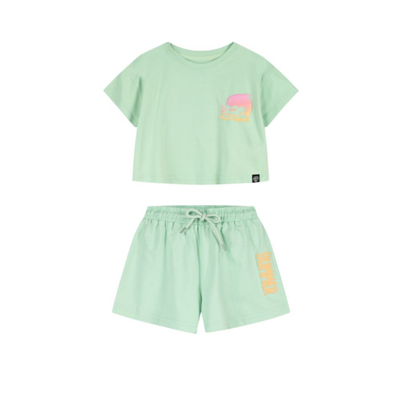 Παιδικό καλοκαιρινό σετ για κορίτσι από την εταιρεία ENERGIERS, ιδανικό για άνετες και ευκολοφόρετες εμφανίσεις στις ζεστές ημέρες του καλοκαιριού. Το σύνολο προσφέρει άνεση και ελευθερία κινήσεων, ώστε το παιδί να απολαμβάνει το παιχνίδι, τις βόλτες και τις καθημερινές δραστηριότητες. Μια πρακτική επιλογή για καλοκαιρινό ντύσιμο με στυλ και άνεση.
